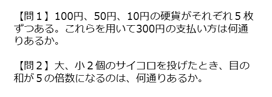 硬貨の枚数の組合せは、和の法則を利用して求める。樹形図を描くと、独立した樹(同時に起こらない複数の事柄)が複数できる。