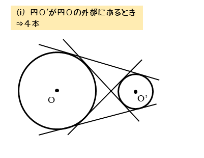 複数の図形に対して、共通接線を何本引けるかなどの問題がよく出題されます。