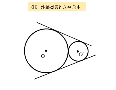 また、2円O,O’が外接するので、2円は共有点を1個(接点)だけもちます。