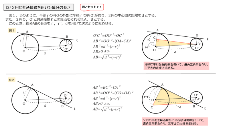 また、2つの円を扱う問題では共通接線もよく扱われます。