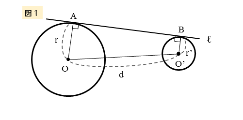 1つ目のパターンは、図1のように、共通接線との接点がともに同じ側(図では上側)にある図形です。