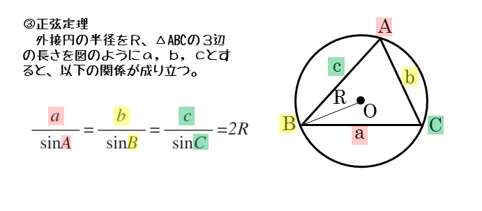 正弦定理については、図形の計量の単元で学習済みです。外接円が出てくると、正弦定理を扱った問題がほぼ確実に出題されます。