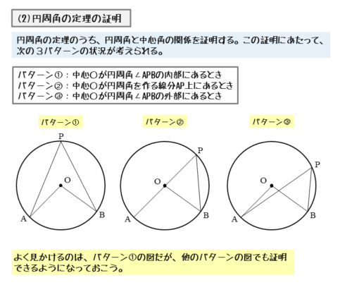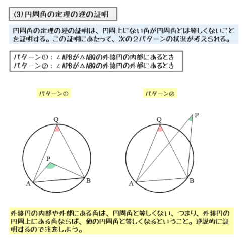 「円周角の定理の逆」の証明は2パターンの場合分け