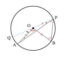3点A,B,Qは円周上にあるので、∠AQBは円周角です。