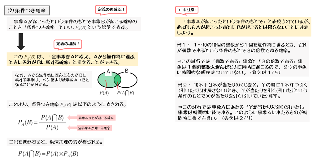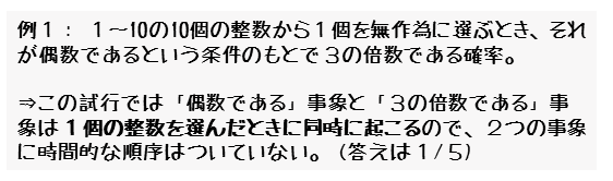 実は、事象Aが起こったあとに事象Bが起こるとは限らない場合があります。2つの事象A,Bには時間的な順序は関係ないことに注意しましょう。
