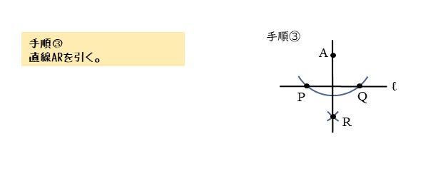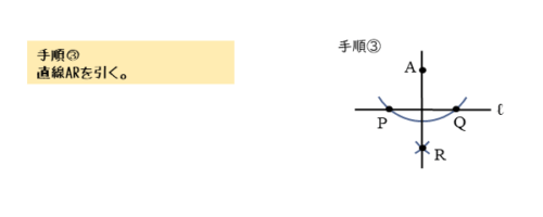 2点A,Rを通る直線を定規で引きます。この直線ARが点Aを通る垂線です。