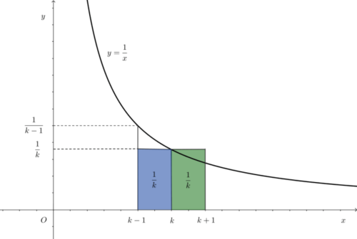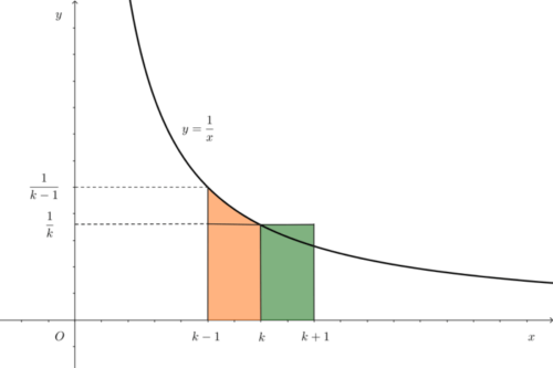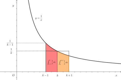 &\quad \frac{1}{k} \lt \int_{k-1}^k \frac{1}{x} dx \quad \cdots \text{①} \\[ 10pt ]