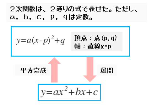 なぜなら、2次関数の式の形には「一般形」と「標準形」の2種類しかないからです。必ずどちらかの式で表せます。