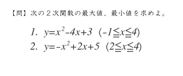 2次関数|2次関数の最大値や最小値を扱った問題を解いてみよう