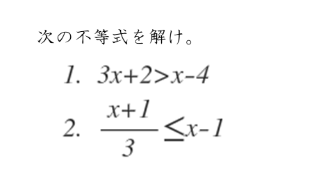 一次不等式に慣れるために、一次不等式を扱った問題を実際に解いてみましょう。