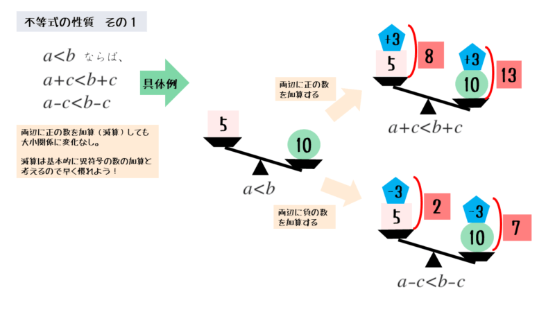 両辺に正負の数を加算しても不等式は成り立つ