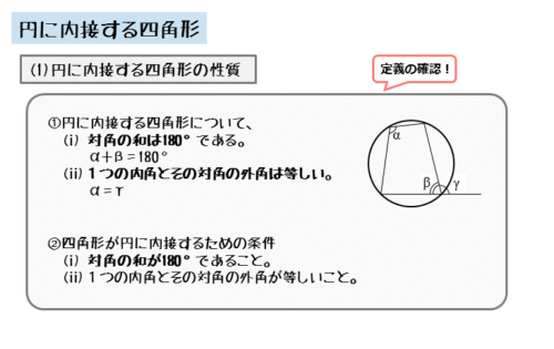 図形の性質|円に内接する四角形について