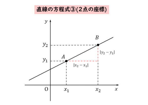 直線の方程式を、2点の座標を用いて表すと以下のようになります。