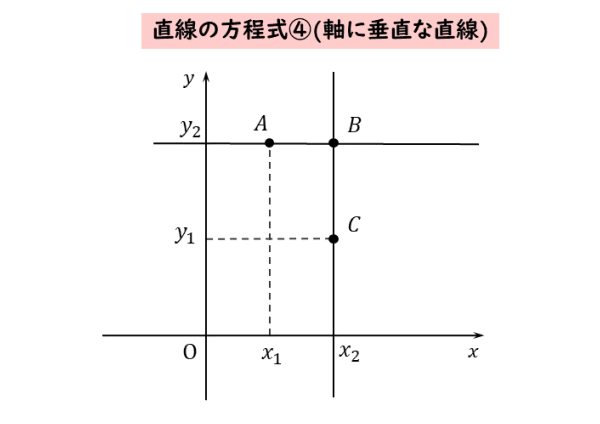 \begin{align*} \quad x=x_{2} \end{align*}x軸やy軸に垂直な直線では、傾きや切片を考える必要はありません。少し特殊なので注意しましょう。
