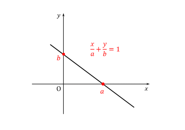 \begin{align*} \quad \frac{x}{a}+\frac{y}{b}=1 \end{align*}ただし、$a \neq 0 \ , \ b \neq 0$