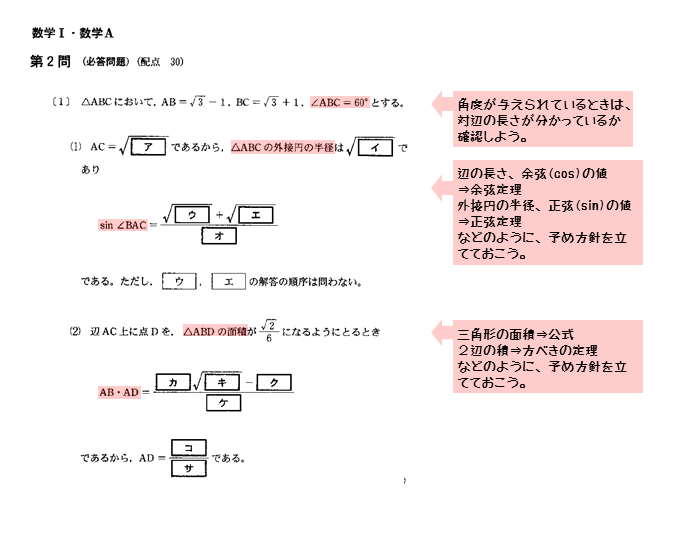 解答欄イに関する問題は、△ABCの外接円の半径を求める問題です。