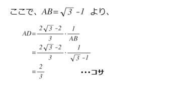 解答欄コサに関する問題は、2辺の積AB・ADの値を前提にして、辺ADの長さを求める問題です。