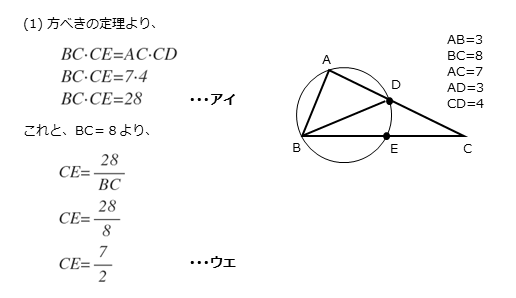 解答欄アイに関する問題は、2つの線分BC,CEの長さの積BC・CEを求める問題です。