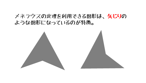 メネラウスの定理なら、矢じり型の図形をイメージしよう。