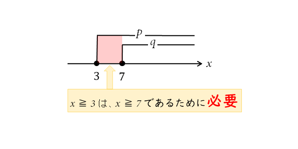 数直線を見ると、x≧7であるために、x≧3であることは条件として必要です。