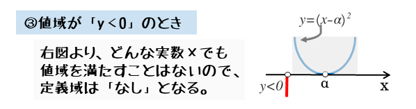 値域がy<0のとき、値域に対応するグラフはありません。グラフが値域に含まれないからです。