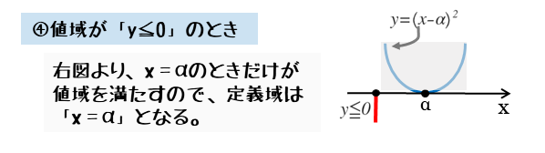 値域がy≦0のとき、値域に対応するグラフは共有点だけが残ります。グラフと言うよりも点と言った方が適切かもしれません。