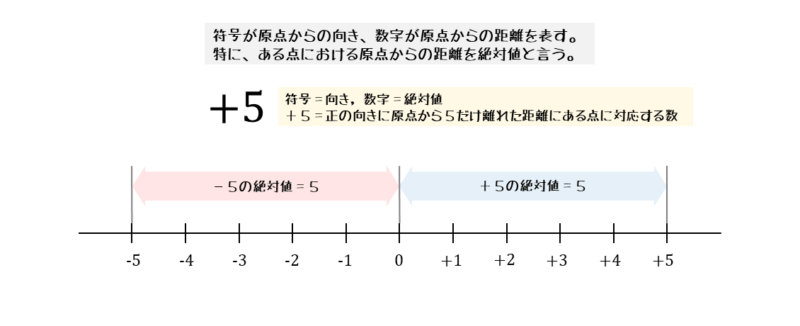 先ほど扱った+5や-5は、以下のような意味を持つ数です。