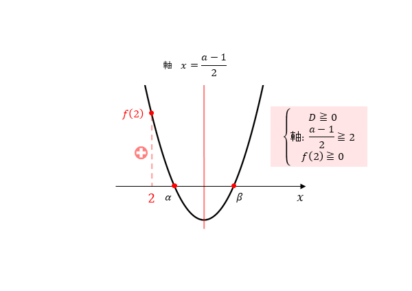 \text{軸} \quad x=\frac{a-1}{2} \geqq 2 \\[ 7pt ]