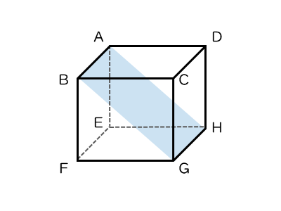 2辺BF,BCは平面BFGCに含まれる辺です。また、2辺AE,ADは平面AEHDに含まれる辺です。