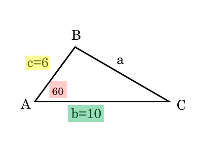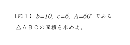 $b=10 \ , \ c=6 \ , \ A=60^{\circ}$ である $\triangle ABC$ の面積を求めよ。